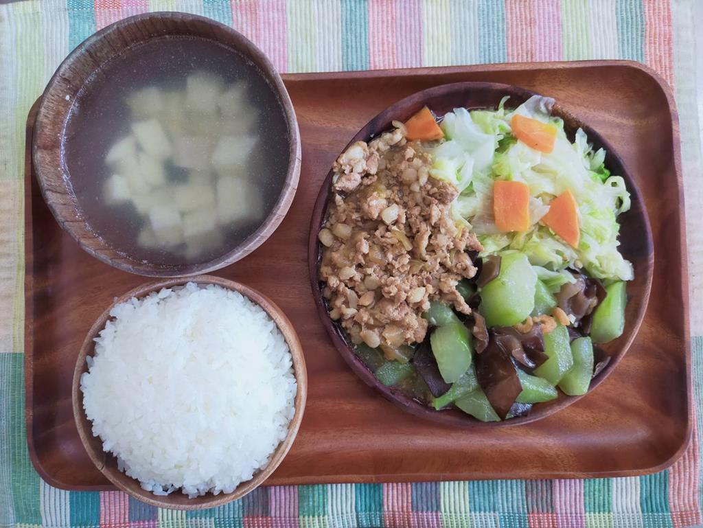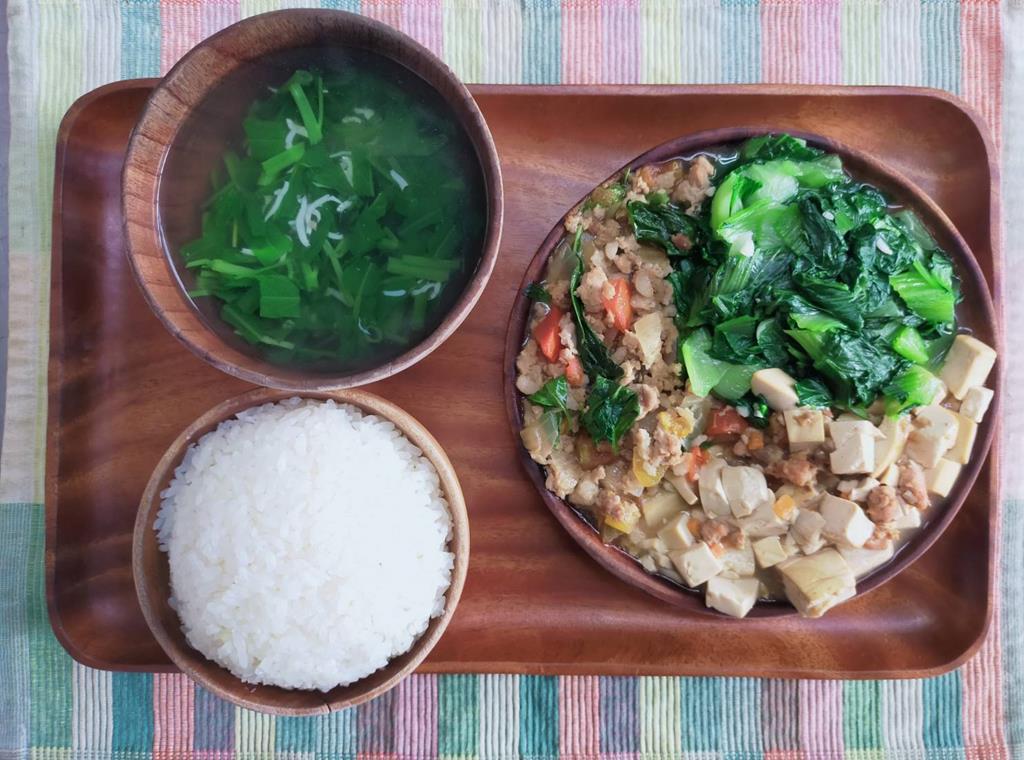 台式打拋諸、家常豆腐、鮮炒食蔬、青菜小魚湯
