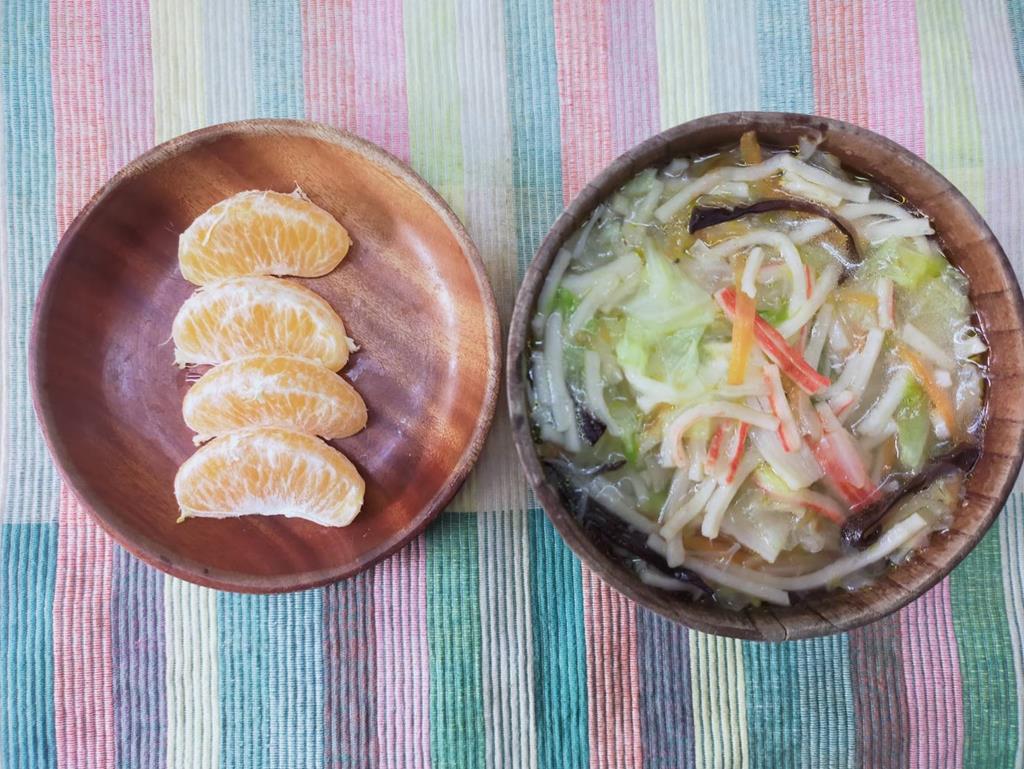 蟹味蔬菜湯、水果