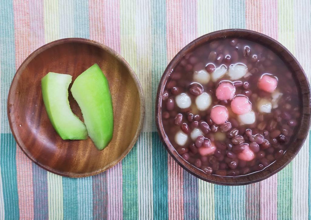紅豆甜湯、水果
