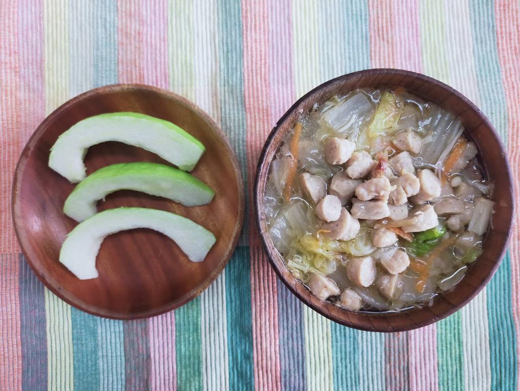 肉羹湯、水果