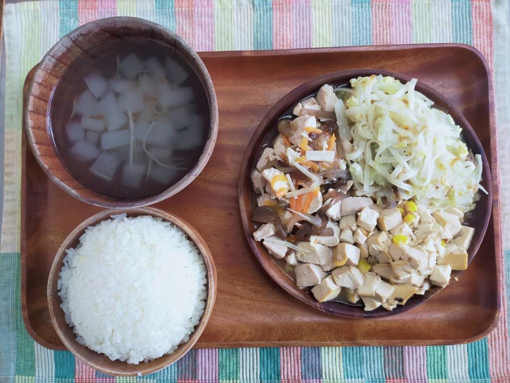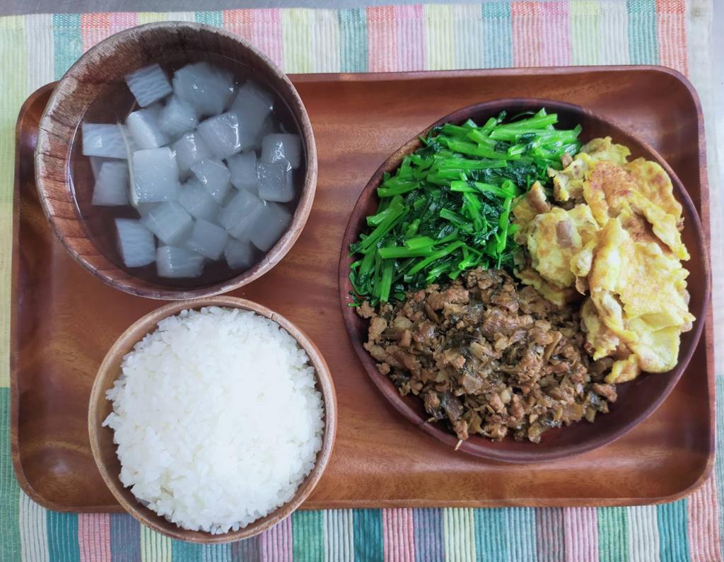 五香肉燥、菜補蛋、鮮炒食蔬