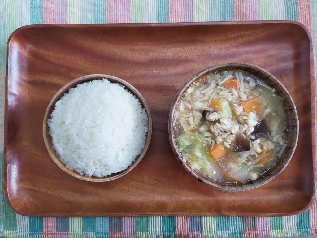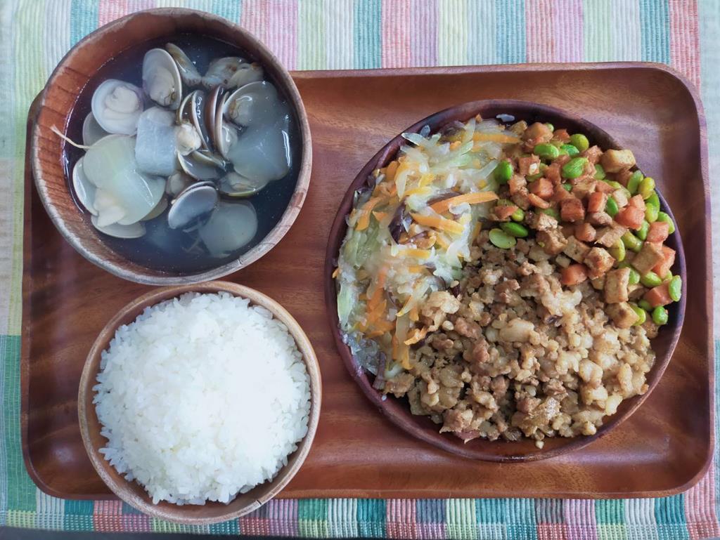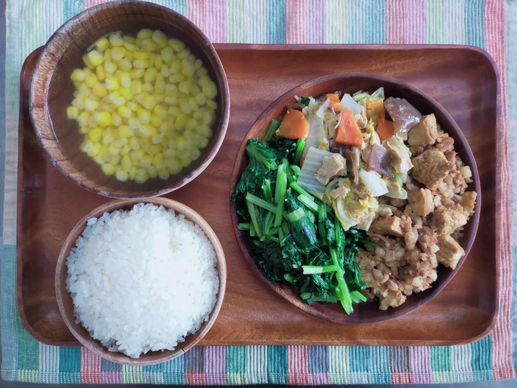 肉燥油腐、木耳炒白菜、鮮炒食蔬、玉米排骨湯