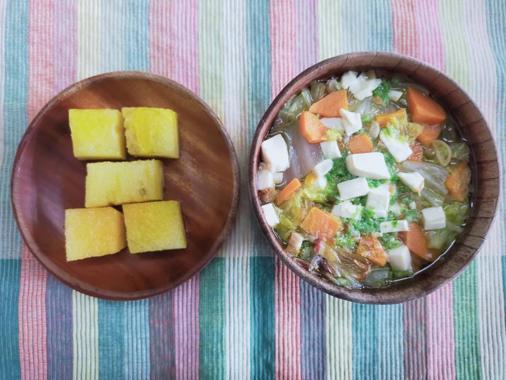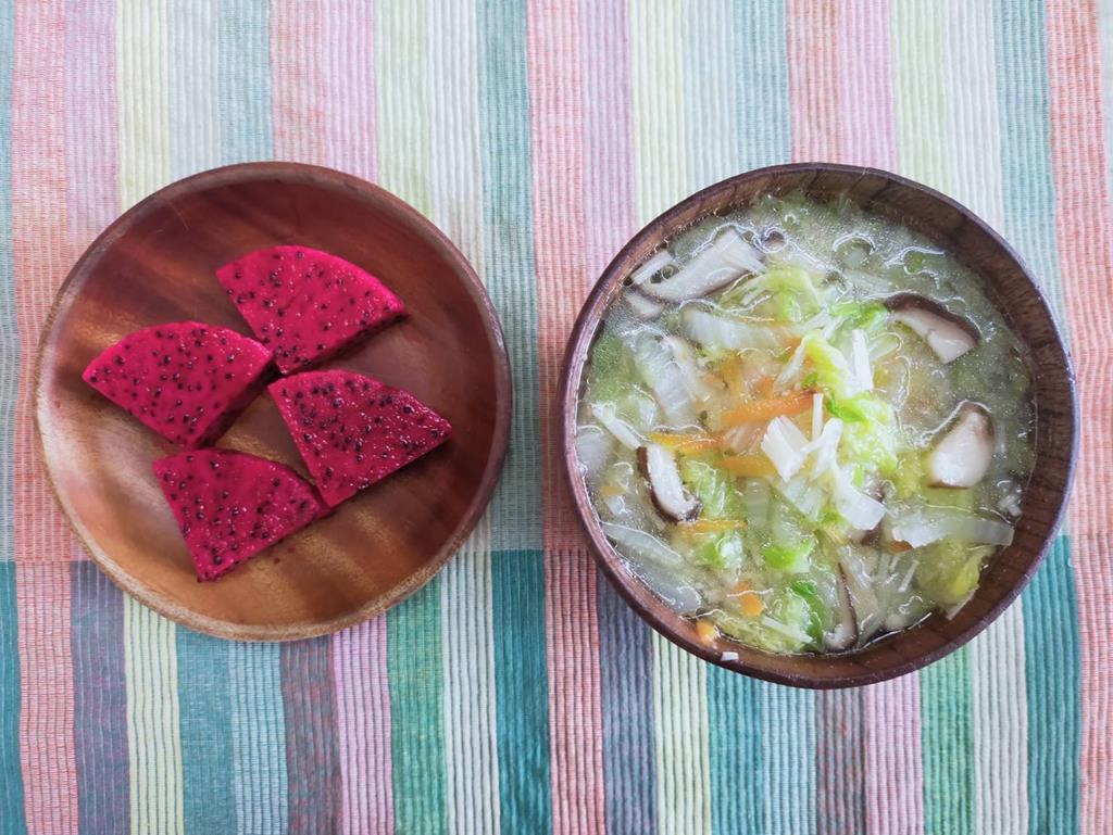 翡翠蔬菜湯、水果