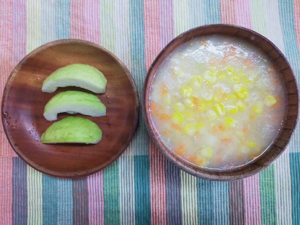 玉米濃湯、水果