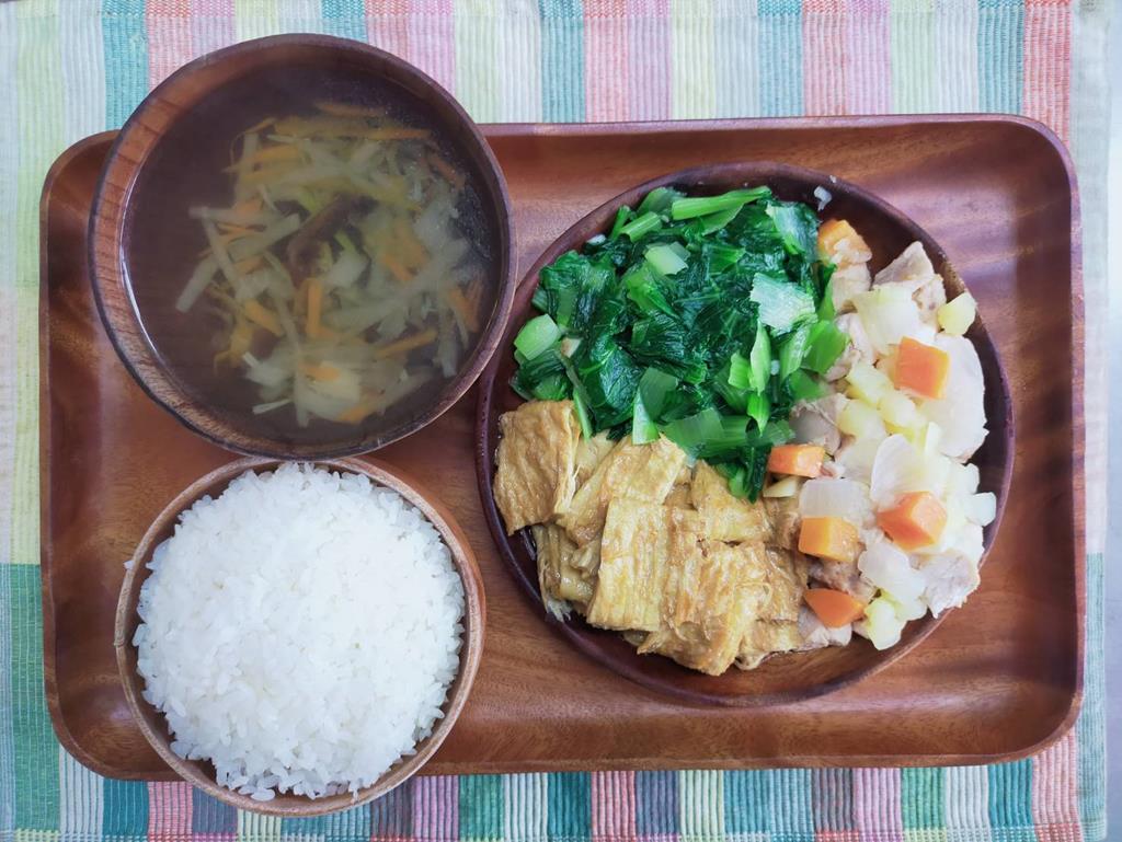 台式打拋雞、白菜滷、鮮炒食蔬、菜頭湯