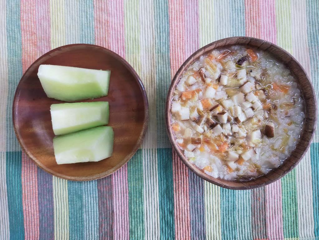 菇菇粥、水果