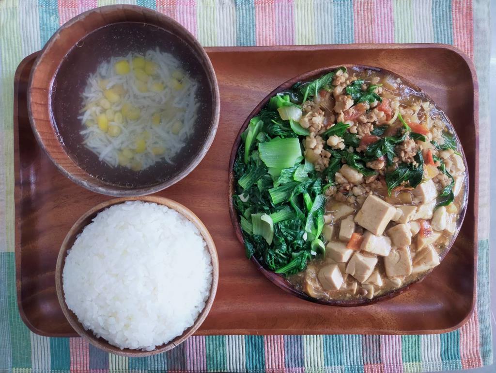 台式打拋豬、家常豆腐、鮮炒食蔬、空心菜小魚湯
