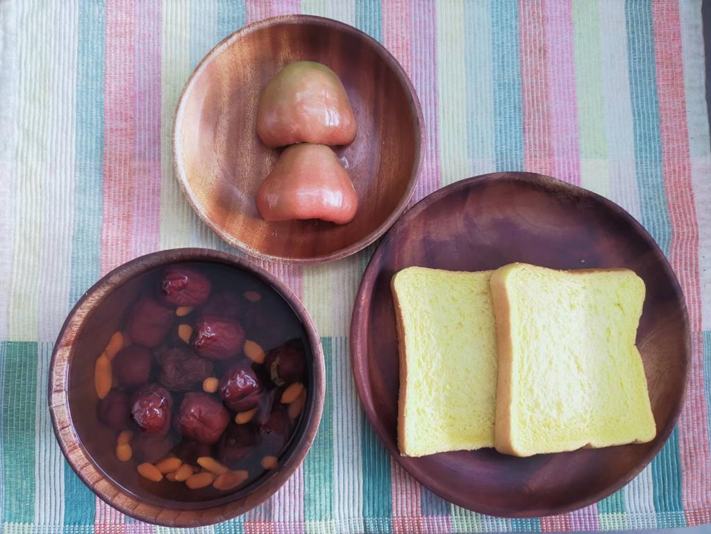 紅蘿蔔吐司、賣茶、水果