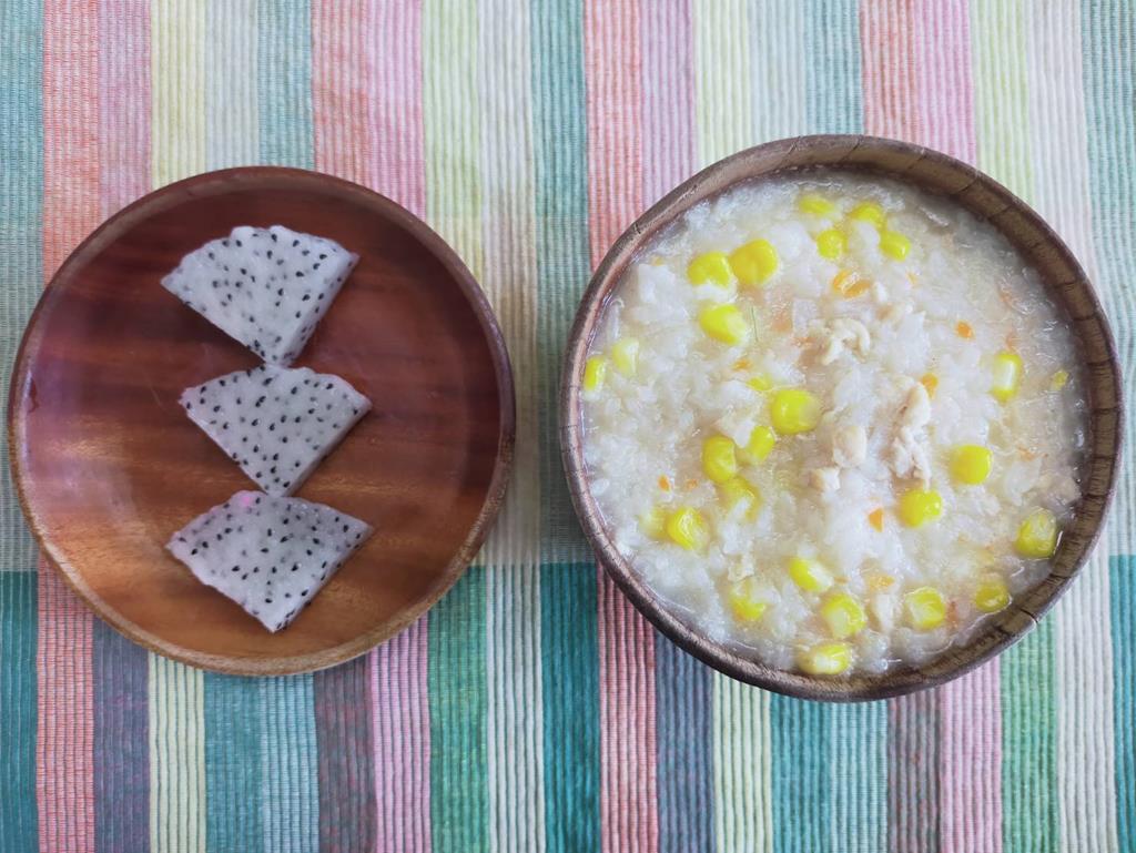 雞茸粥、水果